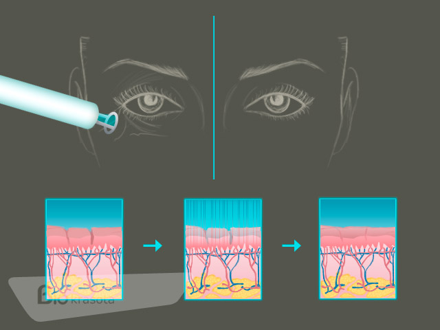 Во время процедуры лазерный луч, рассеиваемый специальной насадкой, через многочисленные каналы проникает в кожу. Травмирование глубоких слоев абсолютно исключено, так как у современных лазерных аппаратов достаточно короткий луч воздействия, да и время воздействия составляет всего 0,5 миллисекунд – за такое короткое время нижележащие слои кожи даже не успевают разогреться.