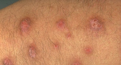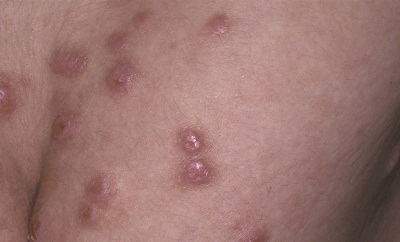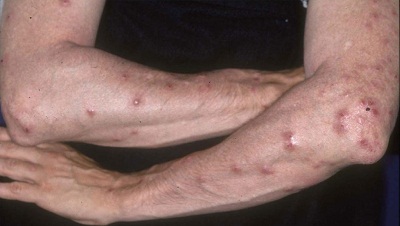 Для узловой почесухи характерно хроническое и длительное течение. В этом случае на туловище, руках и чаще всего на ногах появляются полушаровидные папулы размером до 15 миллиметров.