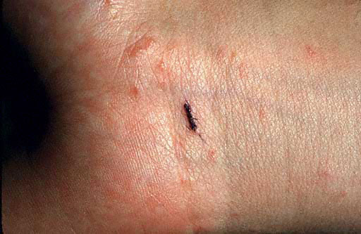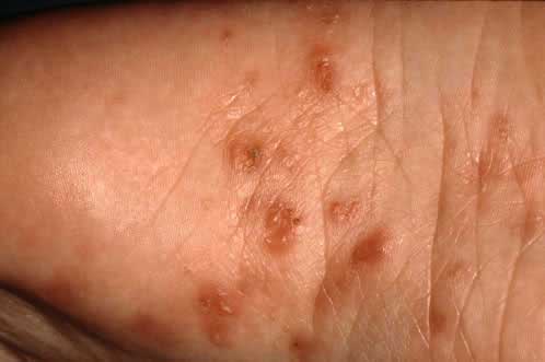 Из-за расчесывания больным кожи в нее проникают стрептококки и стафилококки. Постепенно на коже появляется сыпь, мелкие узелки с пузырьками, а иногда и извилистые серые полоски – чесоточные ходы. Сыпь – это естественная реакция на продукты жизнедеятельности паразитов.