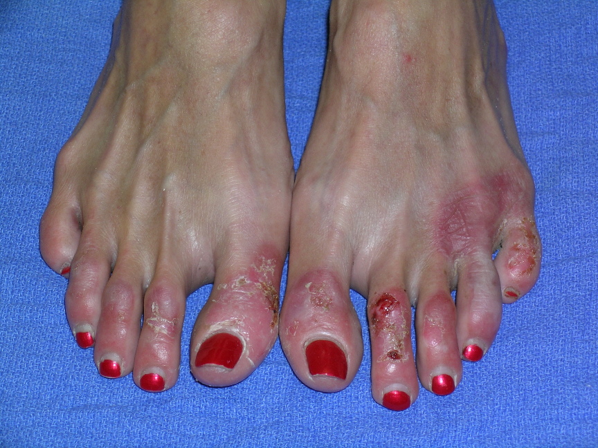 Эту эритему отличает появление на голенях синеватых узелков. Нередко узелковая эритема сопровождается стрептококковой инфекцией.