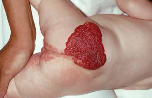 Практически всегда гемангиома обнаруживается сразу же при рождении ребенка. Изредка эта болезнь проявляется только в первый месяц жизни.
