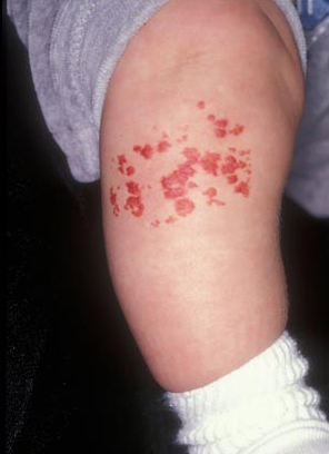 Гемангиома – это часто встречающаяся в детском возрасте сосудистая опухоль. Она выглядит как красные пятна, появляющиеся на теле и лице. С гемангиомой рождается примерно 1% детей. Она обращает на себя внимание только цветом, увеличиваясь вместе с ростом ребенка и не причиняя никаких неудобств.
