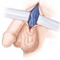 - Хирург проводит небольшой (3-5 см) разрез мошонки сбоку.